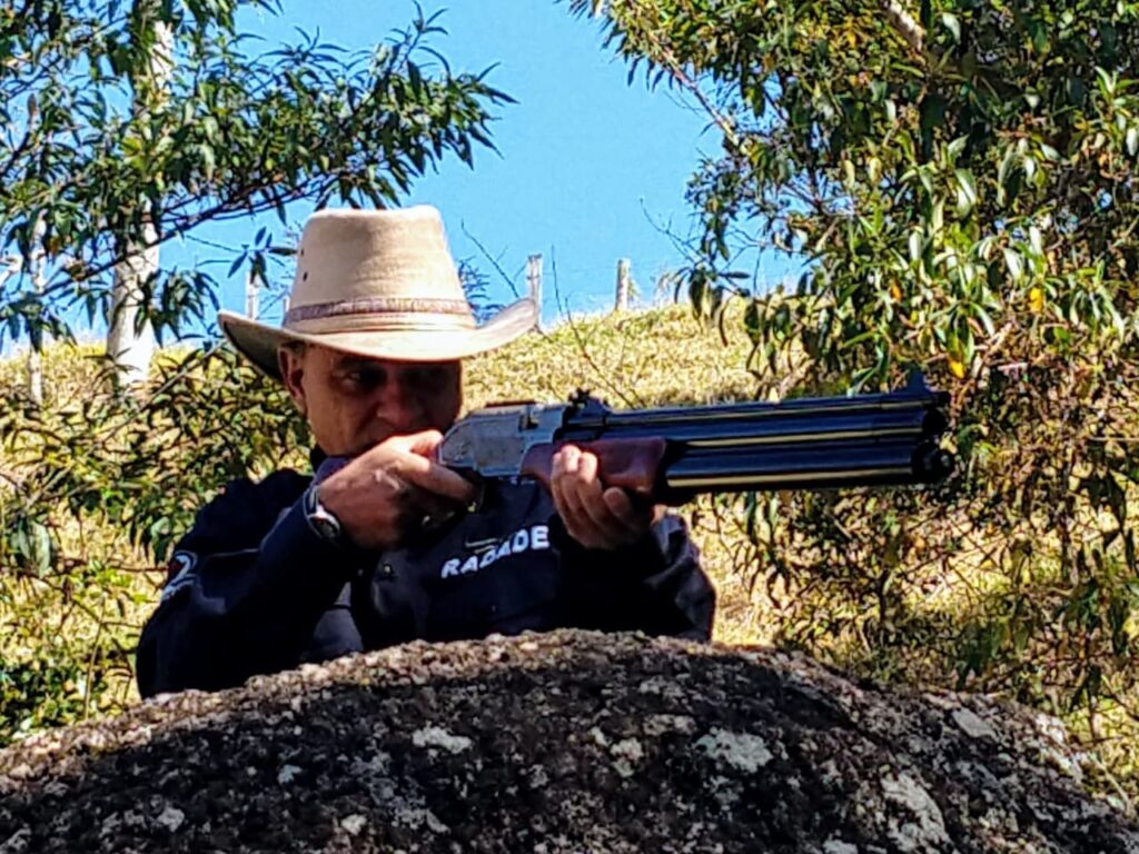 Morando em chácara resolvi comprar uma Carabina de pressão para me distrair, lembrando da adolescência que tínhamos uma Carabina de pressão com calibre 4,5.
